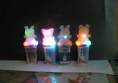 Bei Bedarf Klebstoff mit nassen (Brandwundengefahr) Finger glätten. Drei LEDsköpfe (keinesfalls LEDsbeine) in Beine und Nase dem Bärchen stecken (Reihenfolge der Beinen- KURZ-LANG, KURZ-LANG, KURZ-LANG).